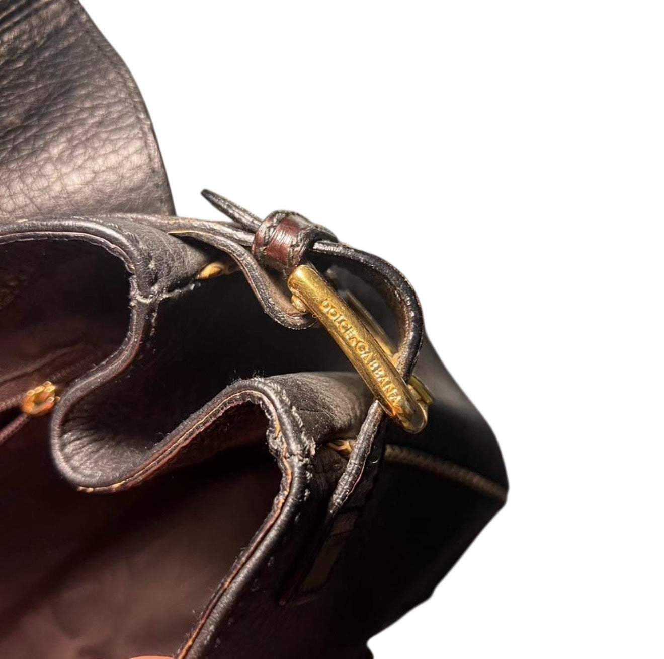 Authentic Y2K Dolce & Gabbana shoulder bag crafted from textured black leather with contrasting snakeskin strap and trim details.
